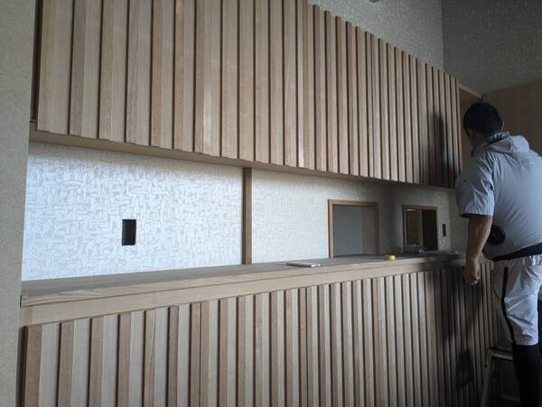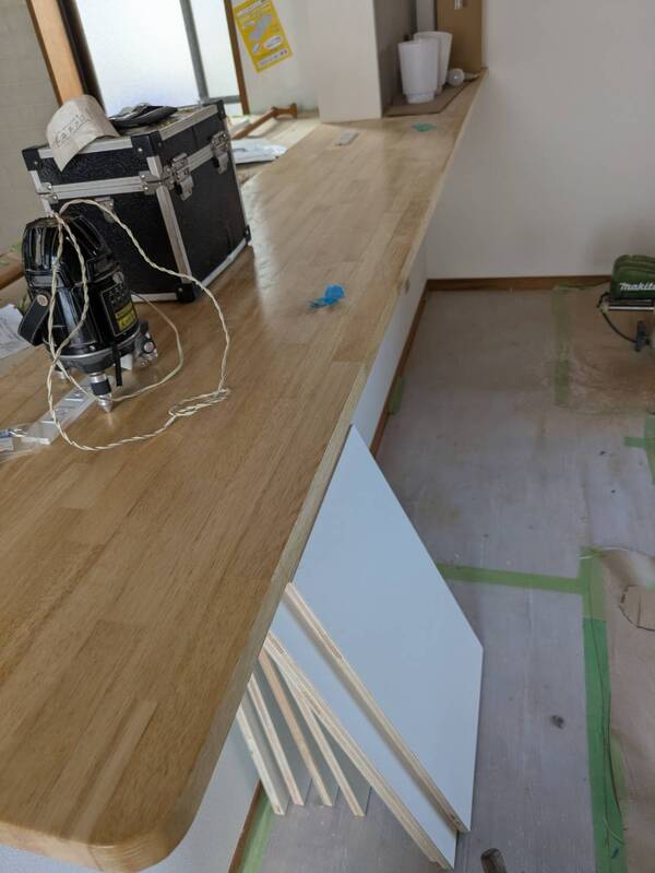 カウンターテーブル&、棚の製作いたしました!サイズに合わせて制作しますので、ぴったり合うように...